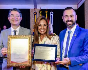 A solenidade ocorreu durante sessão especial da Câmara de Vereadores, reunindo autoridades locais, lideranças e convidados no Clube Comercial do município.