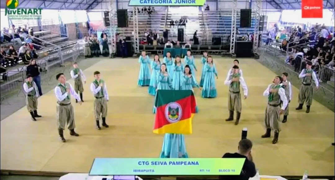 Invernada Juvenil do CTG Seiva Pampeana brilha no palco dos sonhos do JuvENART Júnior em Santa MariaNesta sexta-feira, 1º de agosto de 2025, a Invernada Juvenil do CTG Seiva Pampeana, de Ibirapuitã, realizou uma emocionante apresentação no palco do JuvENART – um dos maiores e mais respeitados festivais de danças tradicionais gaúchas do Brasil, sediado em Santa Maria, no Rio Grande do Sul.