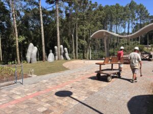Um dos principais atrativos são as esculturas em formato de dedos que emergem do solo na entrada, simbolizando mãos que acolhem e remetem ao Cristo Protetor. As obras reforçam a proposta do local de proporcionar uma experiência sensorial e simbólica desde a chegada.